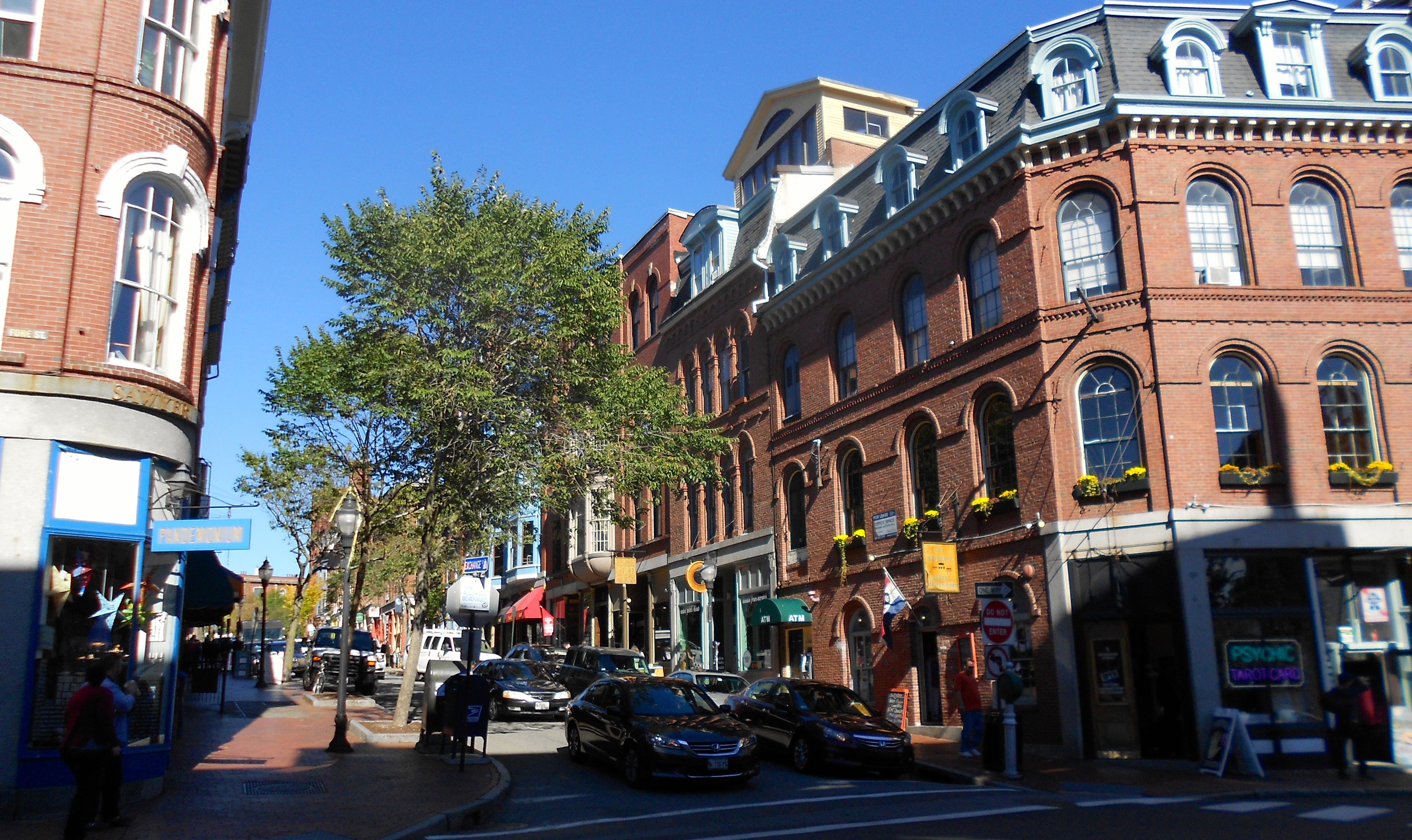 My cover photograph is a sliver of one of my favorite intersections in the Old Port section of town, but for a fuller look, here’s the entire photo: