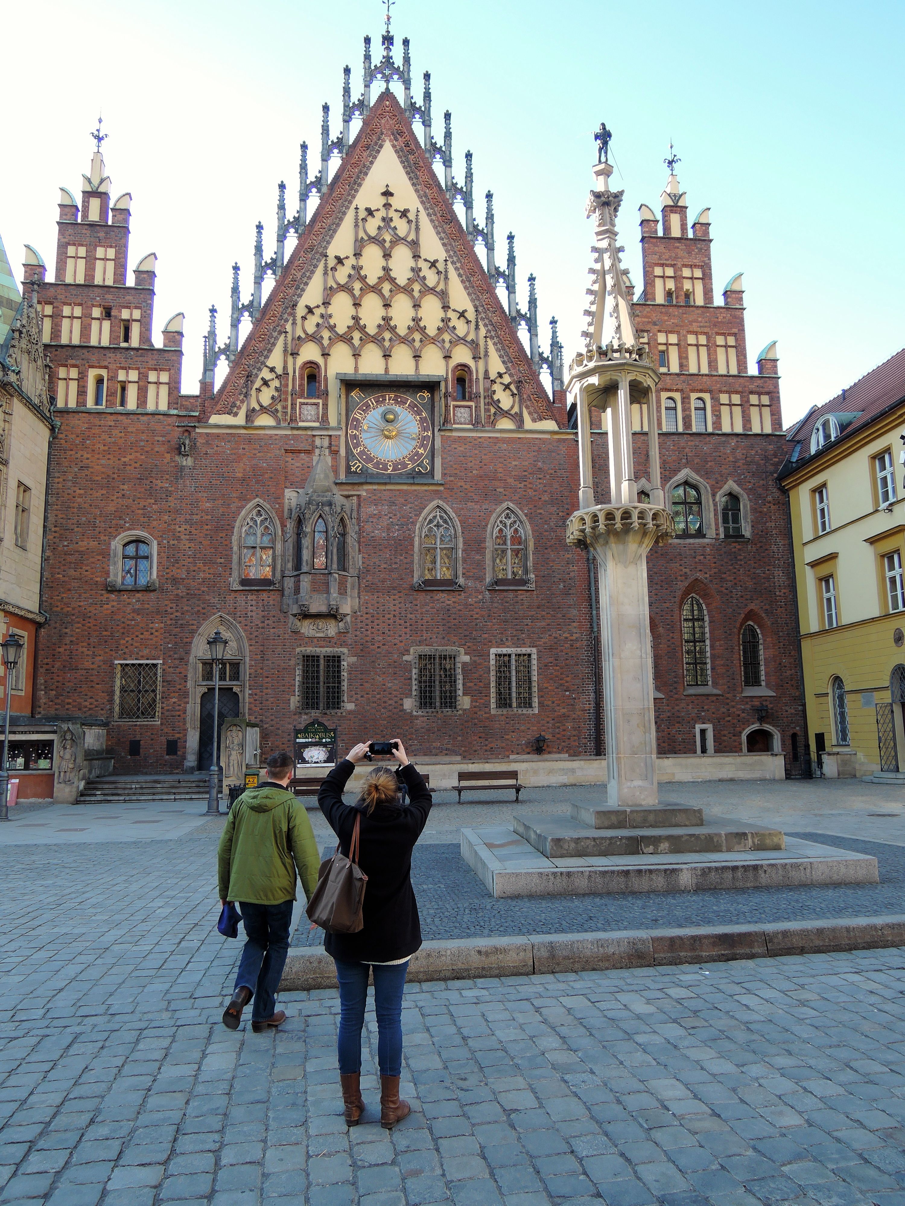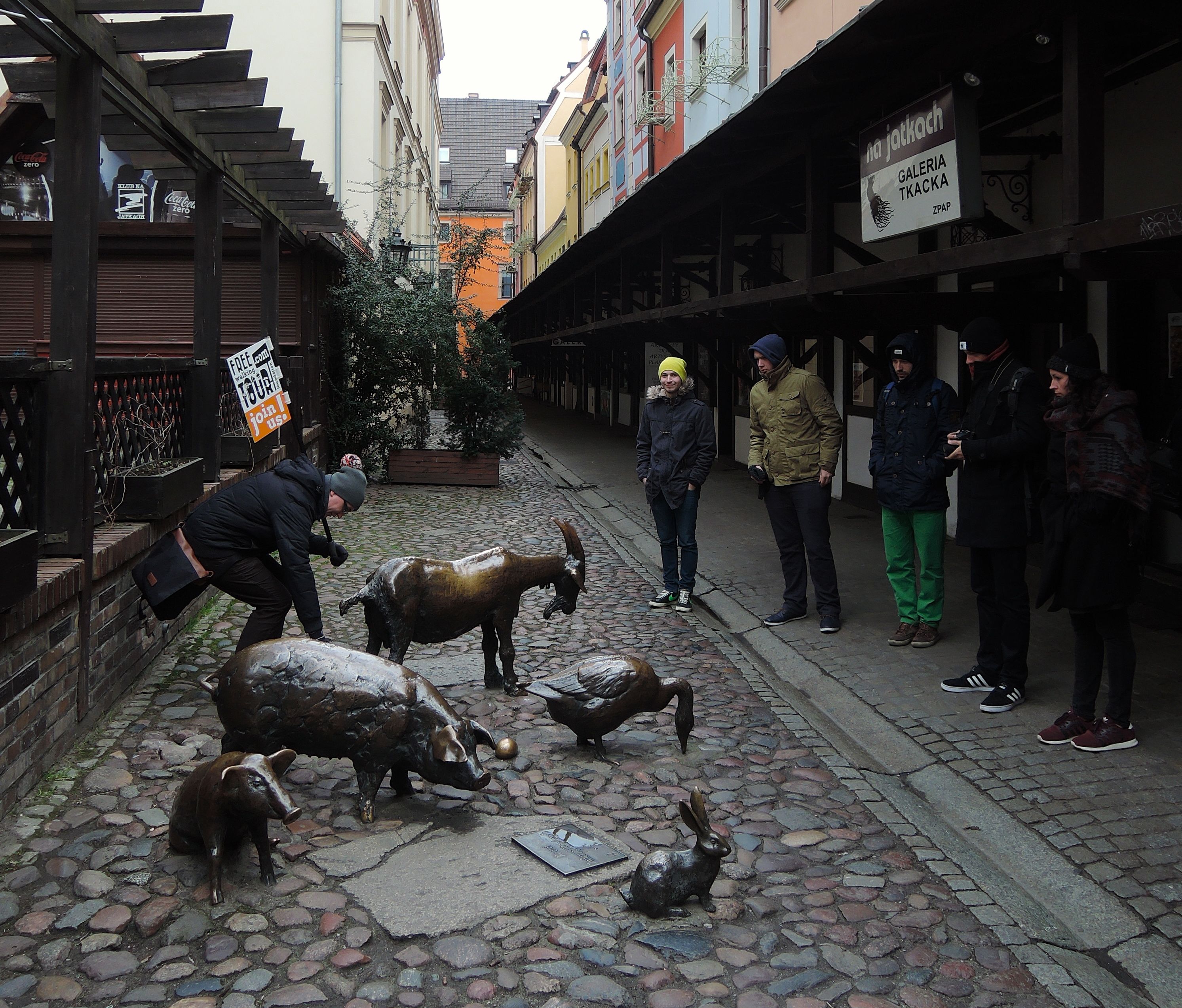 Polish is not yet among the language I count on for much at all. I’m doing a damn fine job of “Hello!” and “Thank you!” but little else. That did not deter my delightful tour guide in the slightest this past Tuesday morning in Wroclaw. He coached his small intrepid band of travelers shivering in the light drizzle with great enthusiasm, humor, and panache. “Say “VRAH! Say TSWAHV! Say VRAHTS-WAHV!” and so we did, all British-Swedish-Dutch-Ukranian-Polish-and-American of us.