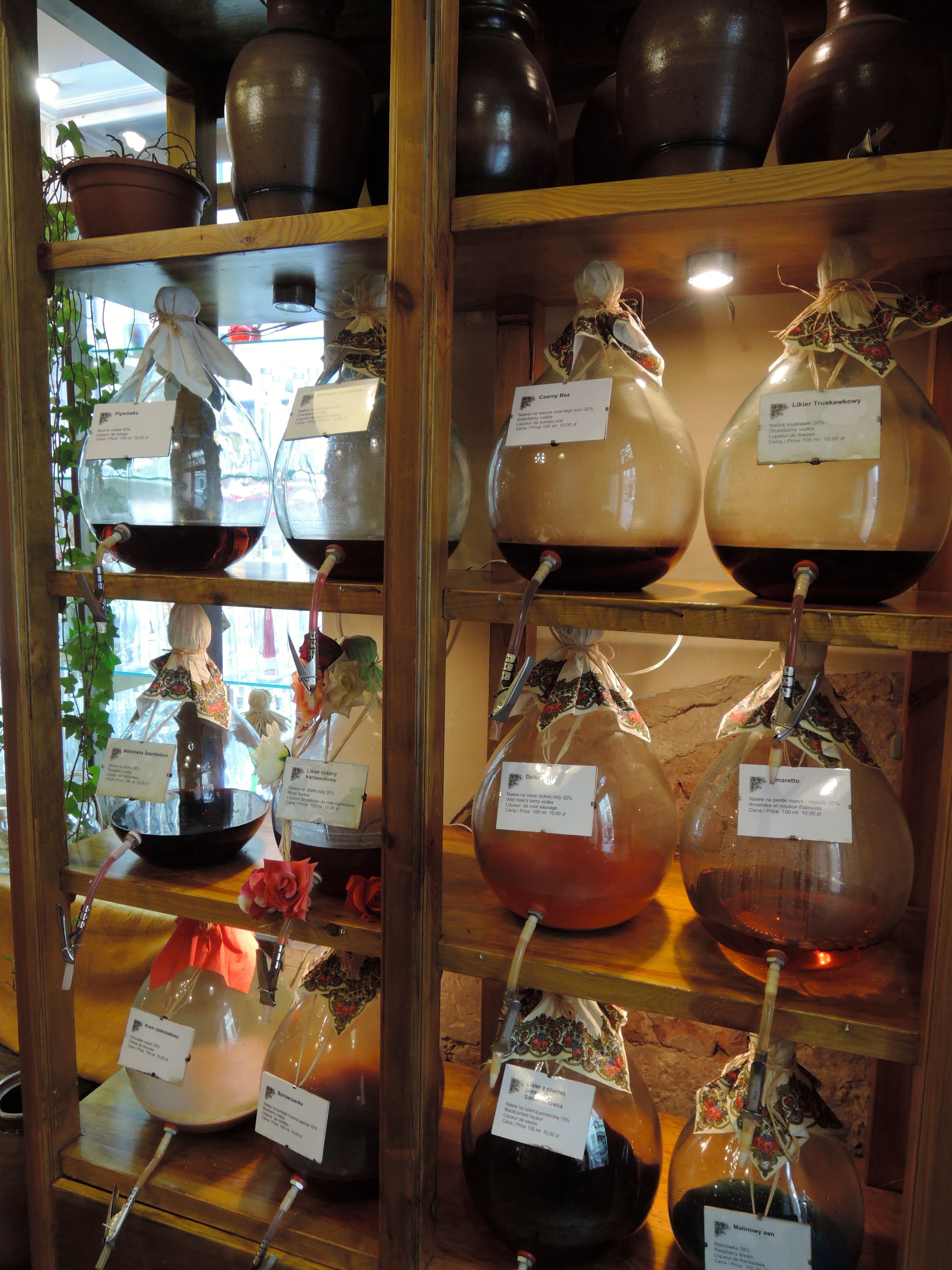 Finally, no trip to Krakow would be complete without a visit to Szambelan, a tiny little establishment where one can find “a huge selection of special vodkas, meads and Polish absinthes decanted from enormous Erlenmeyer flasks.” Since I’m a sucker as much as the next guy for sweet stuff that makes you faintly buzzed, I tried a few of the house brands and then bought 200 ml of quince liquor (upper left) to gift my host in Berlin: