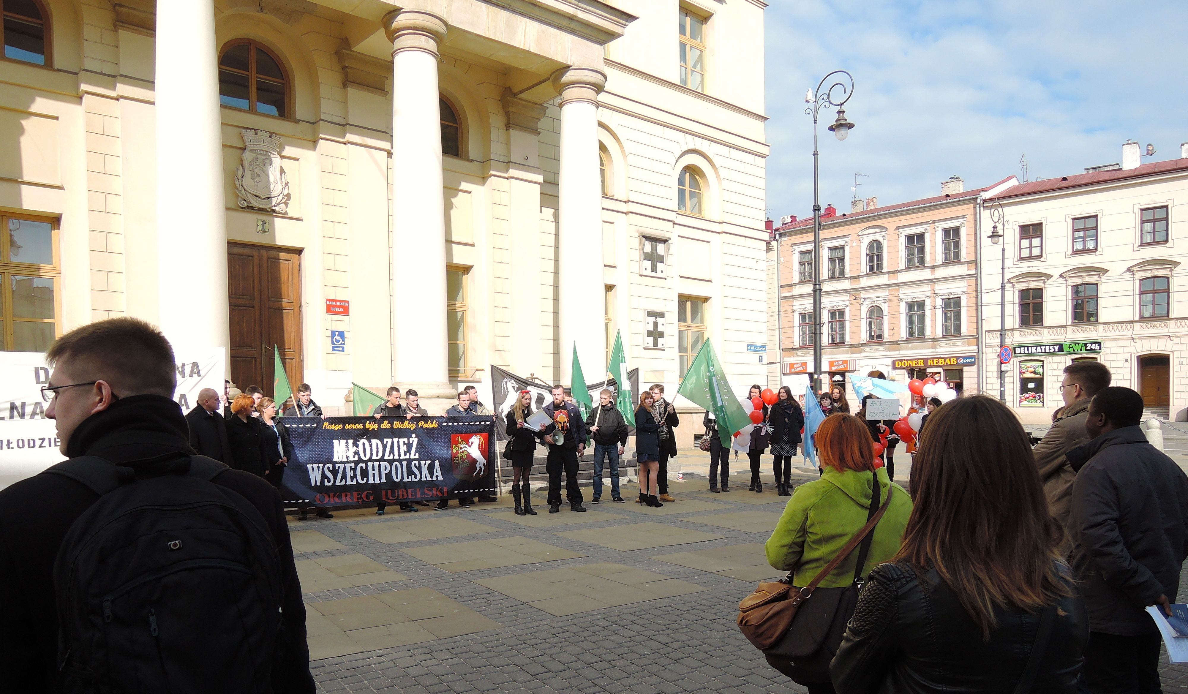 …and as I am trying to understand and reconcile all of this in my head at the end of the day, I stumble across the following demonstration on the steps of City Hall on this past Sunday, International Women’s Day. It’s a group from a conservative party in Poland (don’t know translation of the name) that wants a “return to traditional family life, women at home, fulfilling their natural destiny, raising children. Oh, and we don’t want any of those Muslims, either.” Sigh.