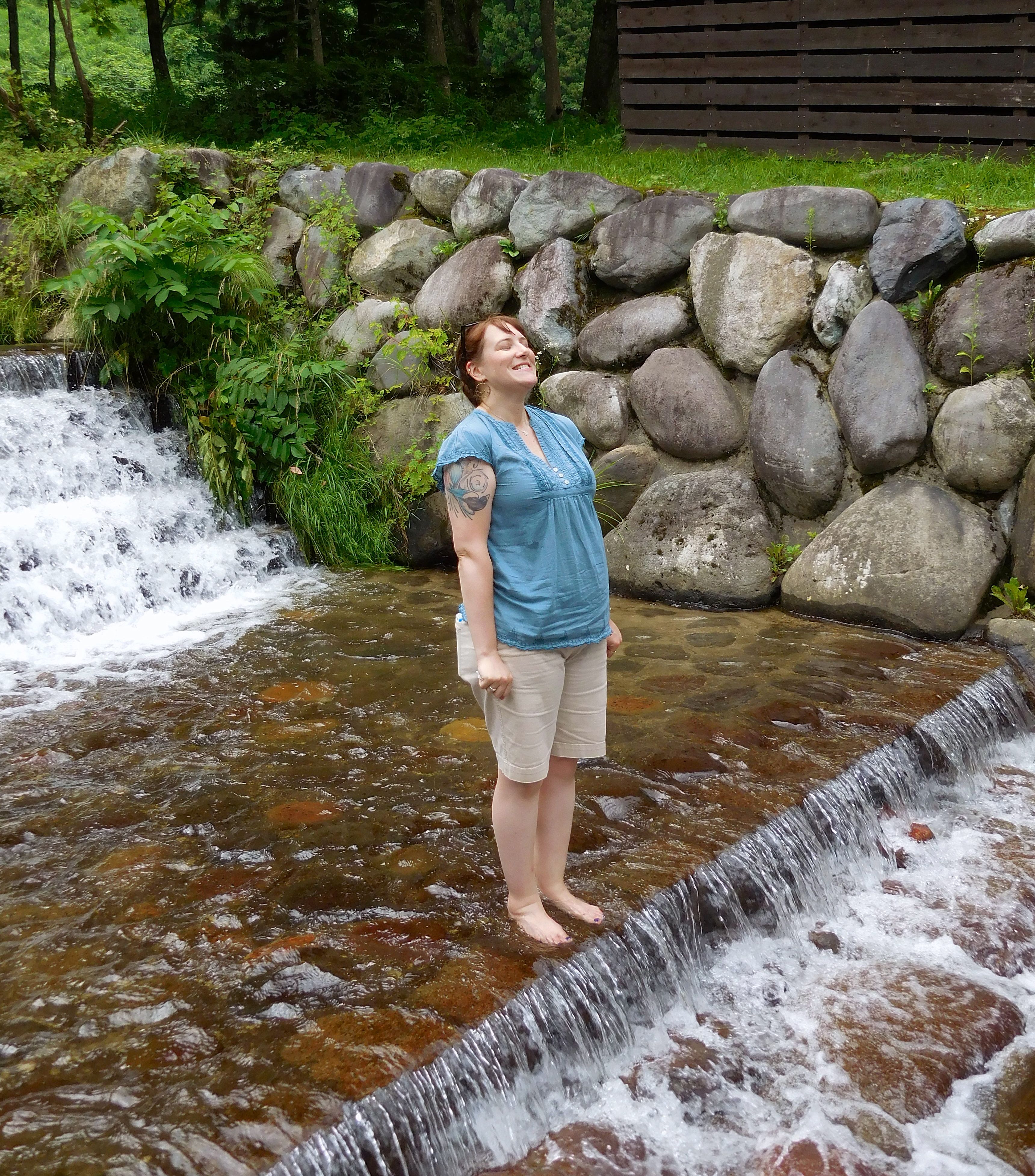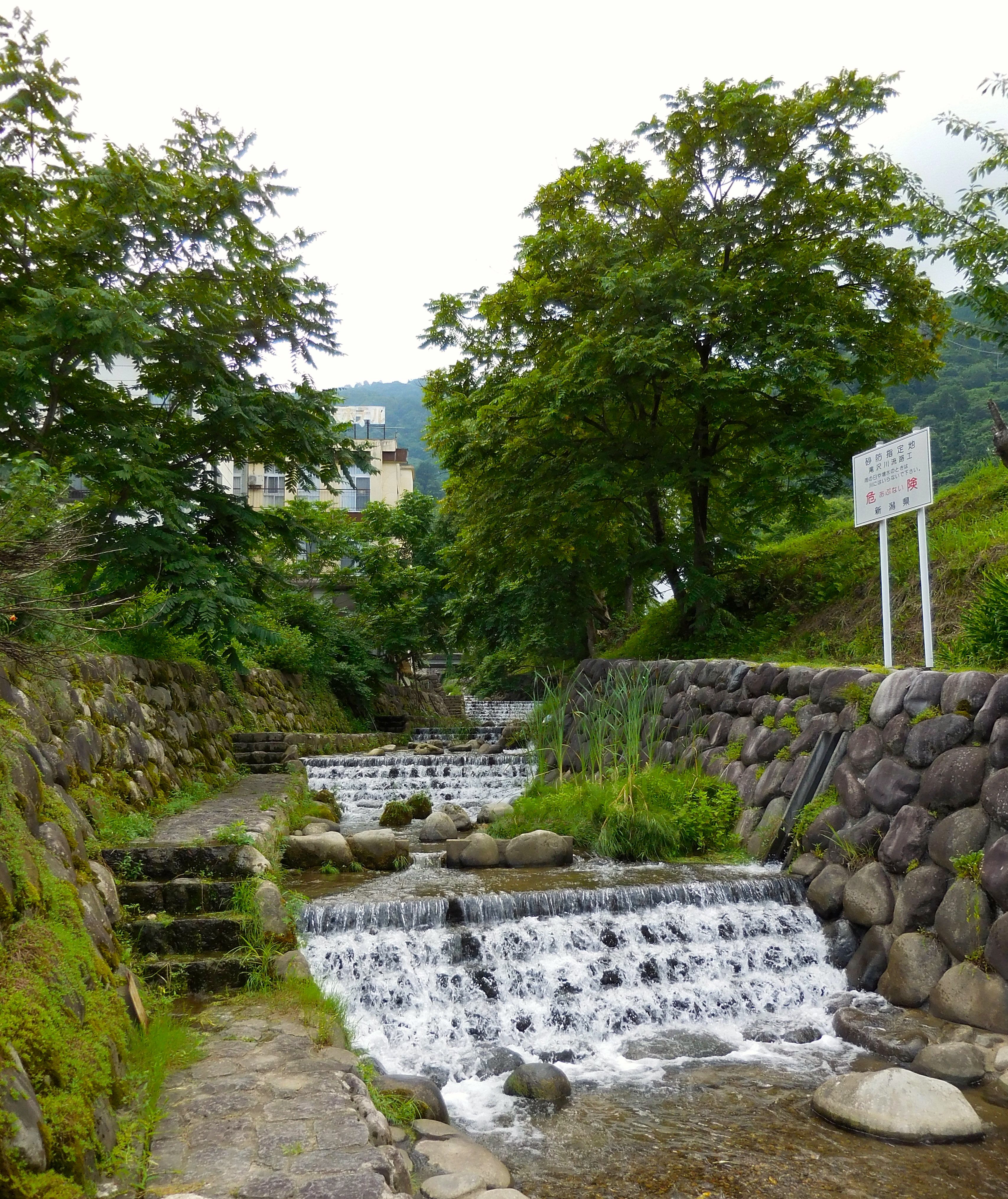 Well, things are going to get a little out of chronological sequence, but I hope you don’t mind. Yesterday two colleagues and I decided to go day-tripping to the nearby alpine village of Yuzawa, and we had a ball poking around town. Known for its tremendous snowfall in the winter, this hamlet and its neighbors throughout the mountains are seasonally packed with folks skiing and visiting the hot spring baths, known as onsen.