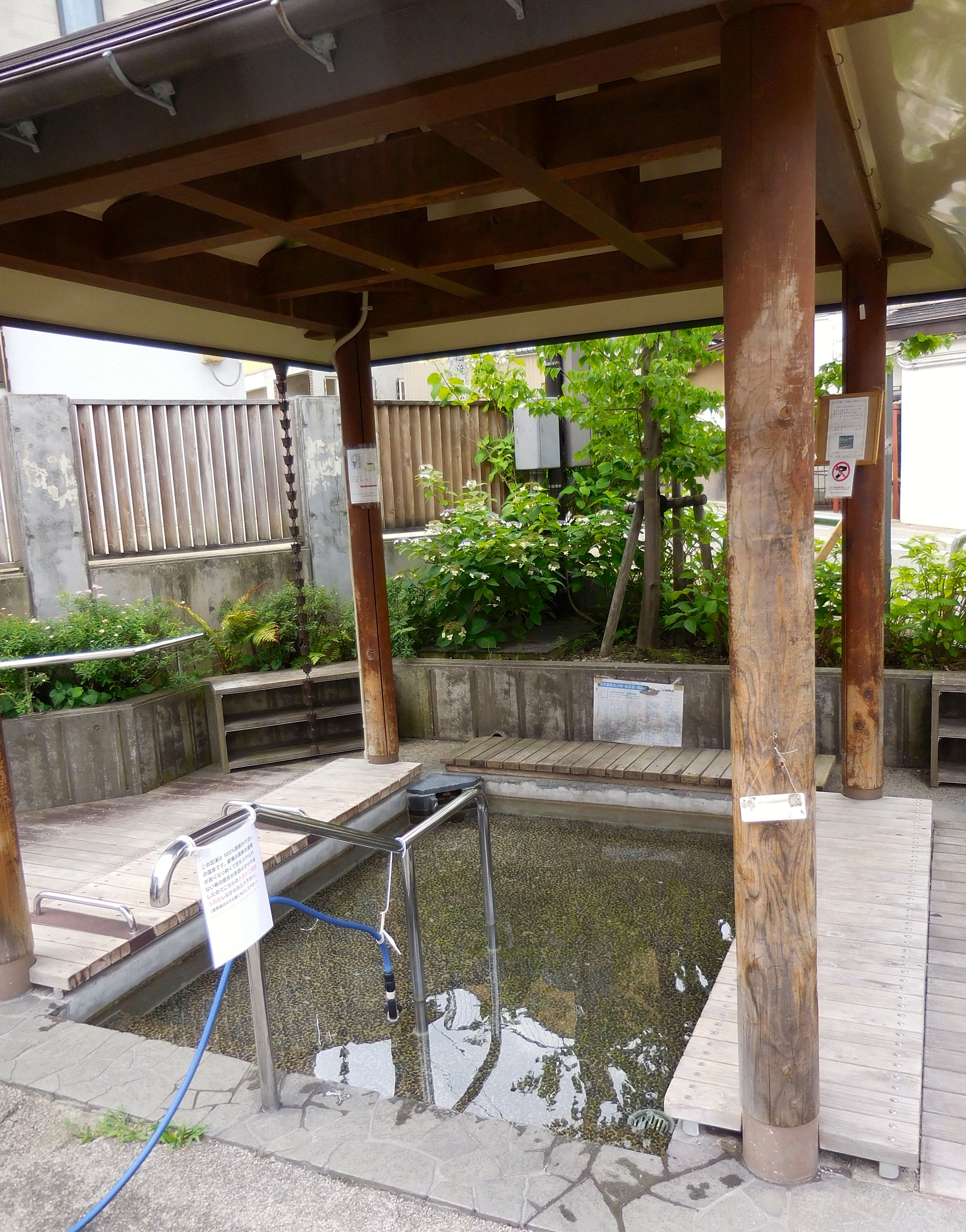 Sated, for the moment, with local culture, we decided to head back to the train station for some refreshment and, that favorite of all cultural activities, shopping. But before we made it there, we stopped to appreciate a civic offering which probably makes more sense in January than July, the outdoor public hot foot bath, of which there are several on this main street, complete with all the requisite warnings and guidance: