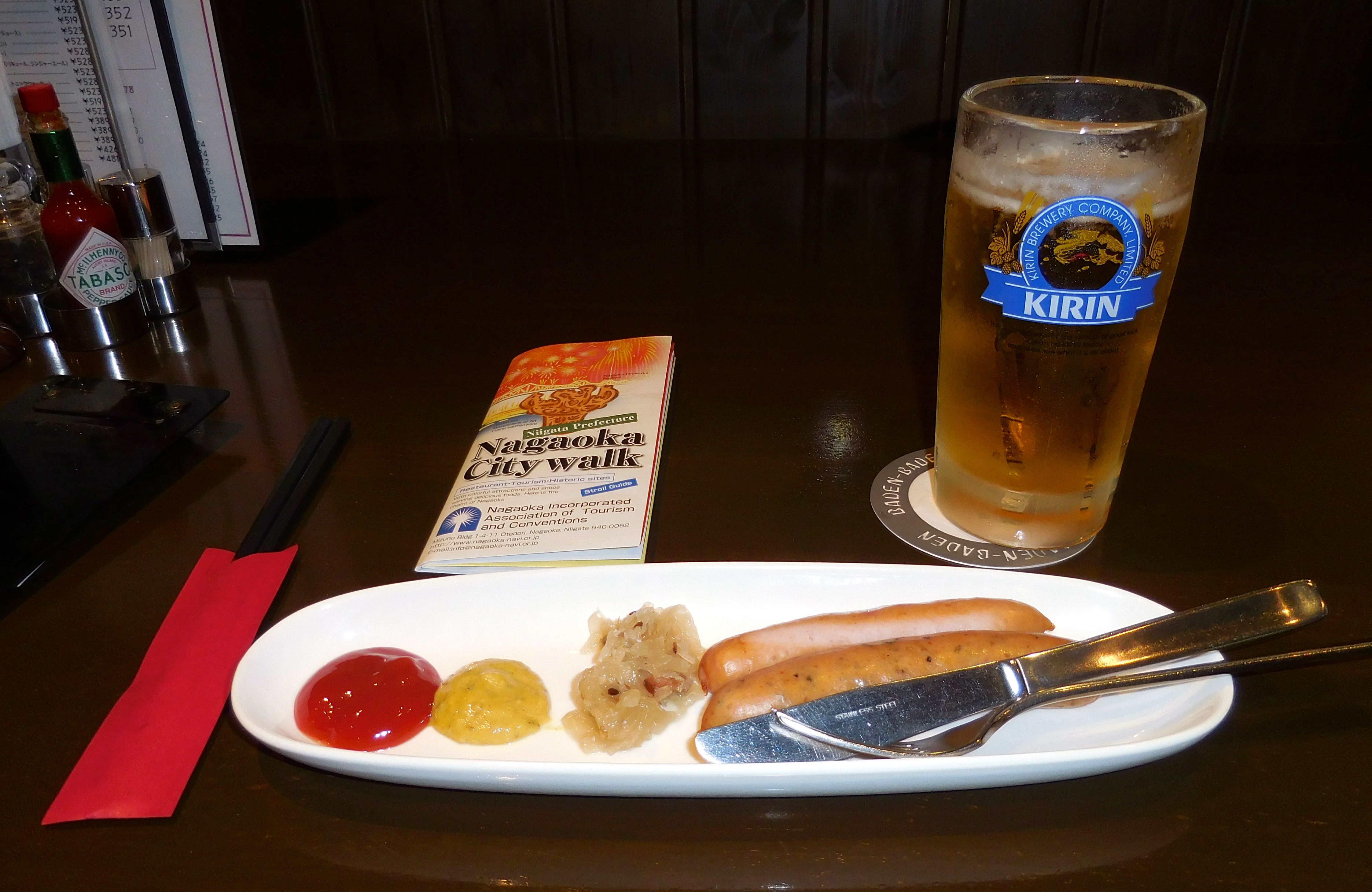 After that kind of emotional experience, a girl tends to get peckish. And since I was in a location where I could, allegedly, get German food, German food I tried to get. Well, there was German beer, but it was really really expensive and the Kirin on draft was really really cheap, so I compromised there, but I was determined to have as much Deutsch as I possibly could out here, so here’s a shot of lunch at Baden Baden: