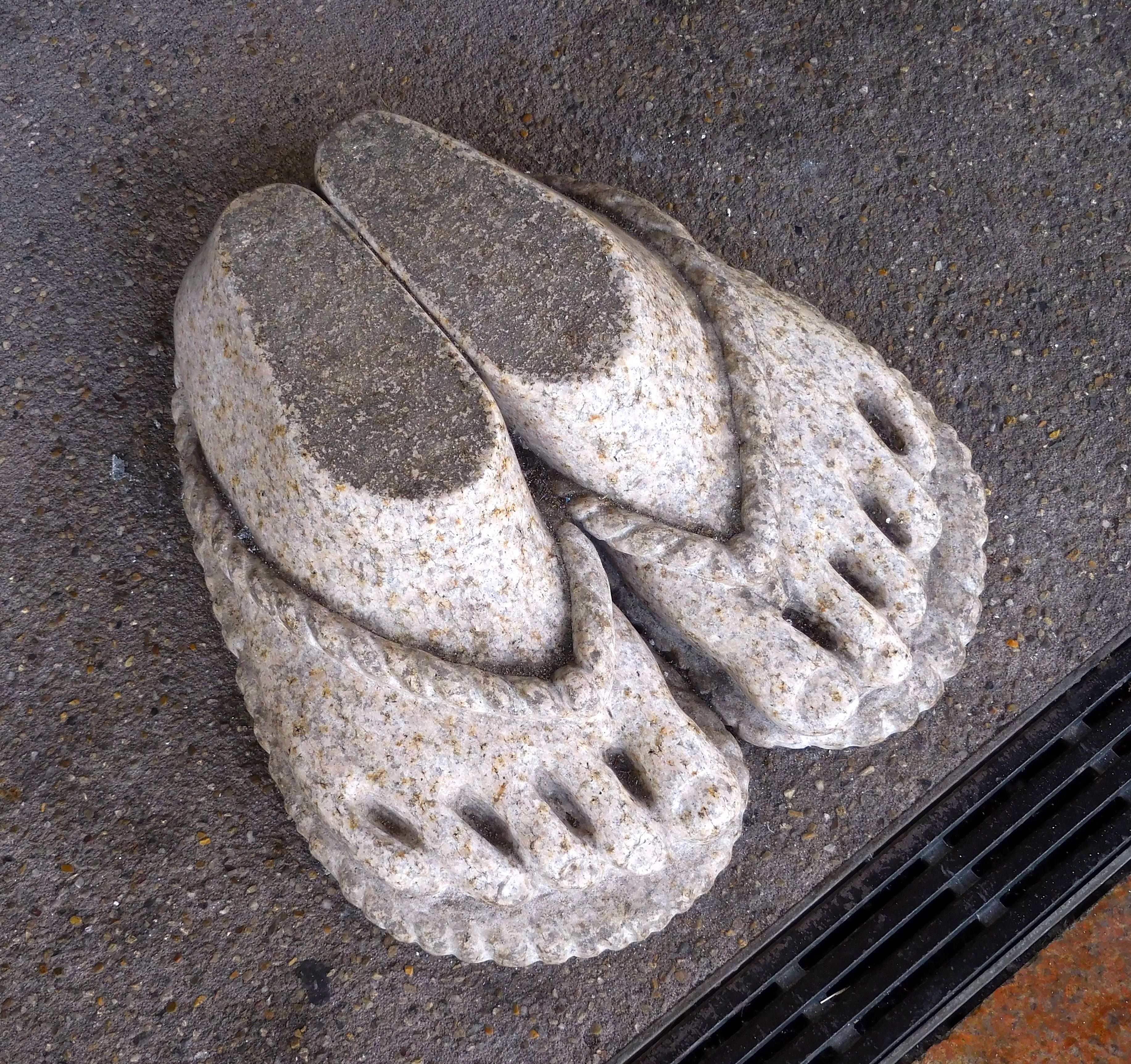 Just to cleanse the intellectual palette, I have to inject some of the whimsical and downright hilarious aspects of the day. I was charmed by the street art of different men’s feet – here are the zori slippers: