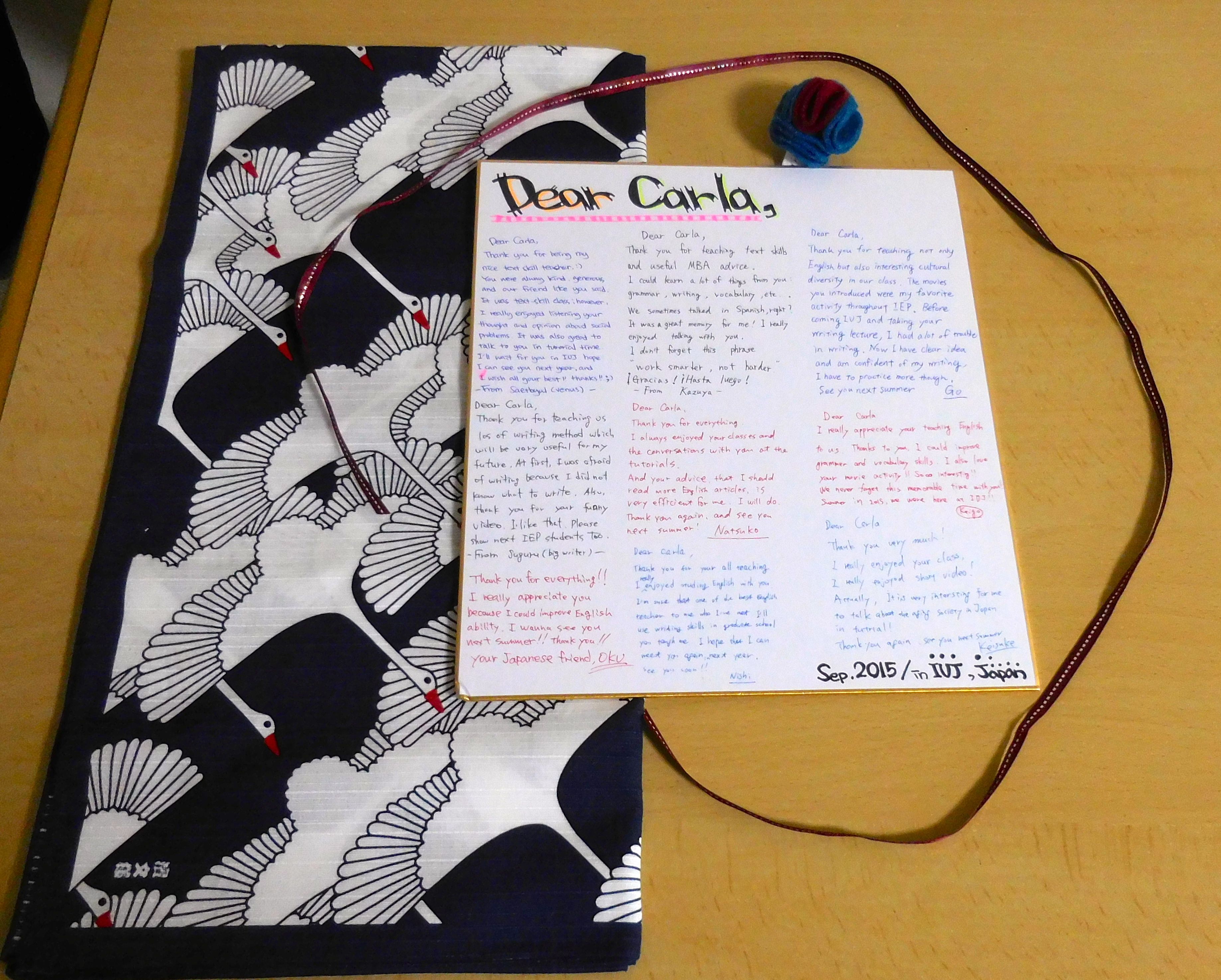 One last poignant shot – my very own “To Sir with Love” gift (a lovely crane tablecloth) with a heartfelt note from every member of the class you see above: