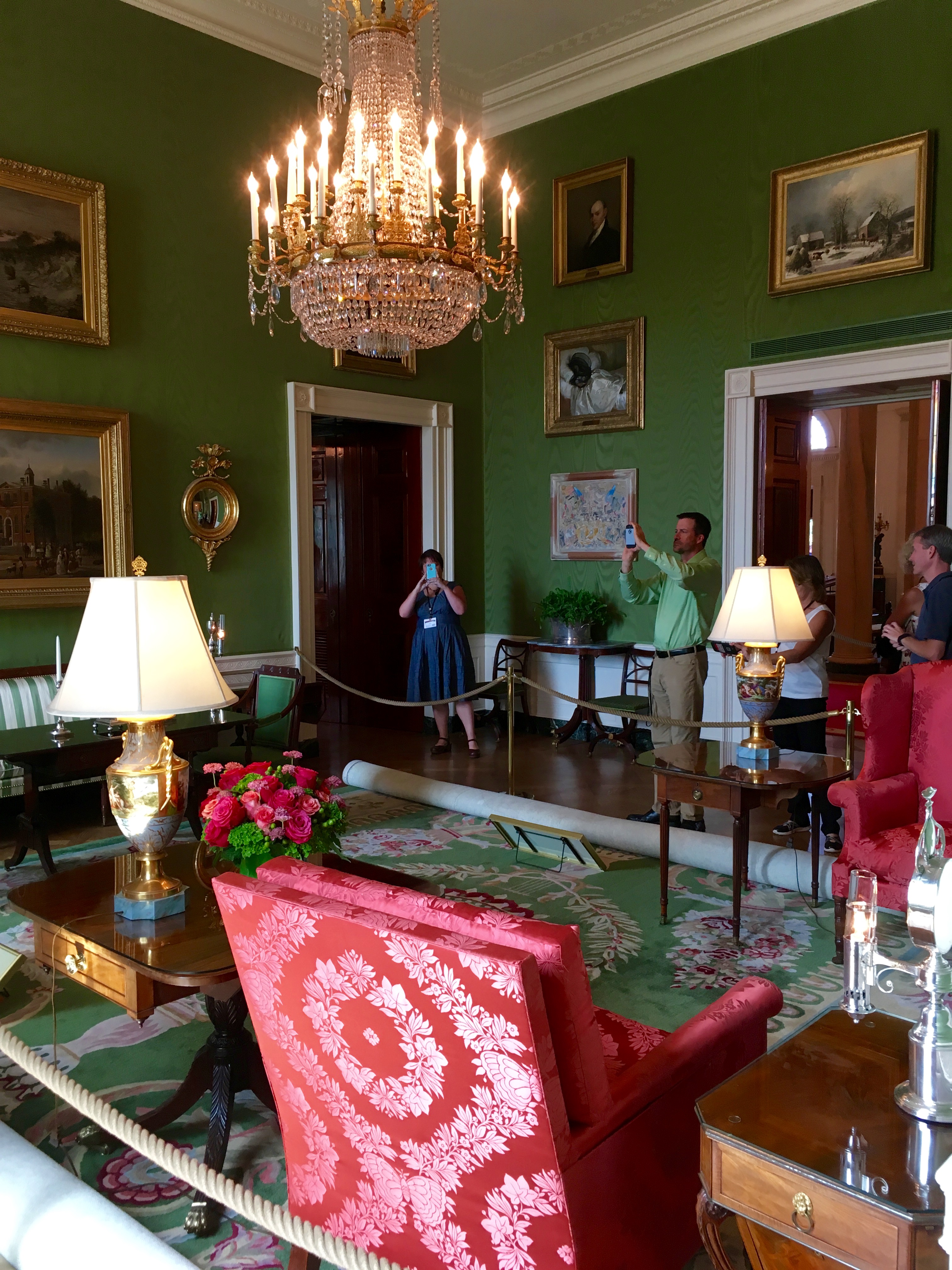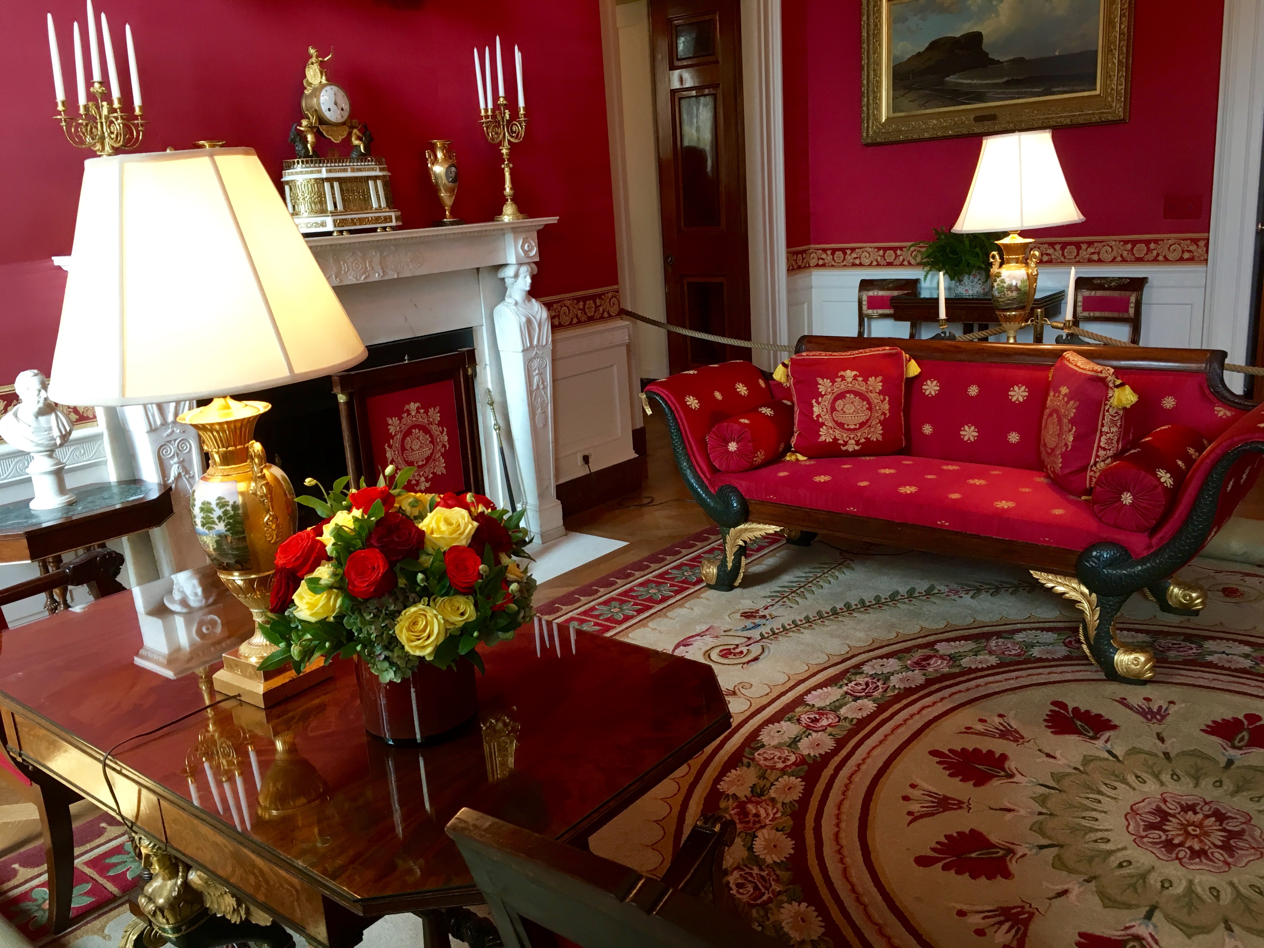 Finally, the most dramatic of the color rooms, the Red Room. My favorite of the three, it was also used as a parlor, most often by the president’s wives and their guests: