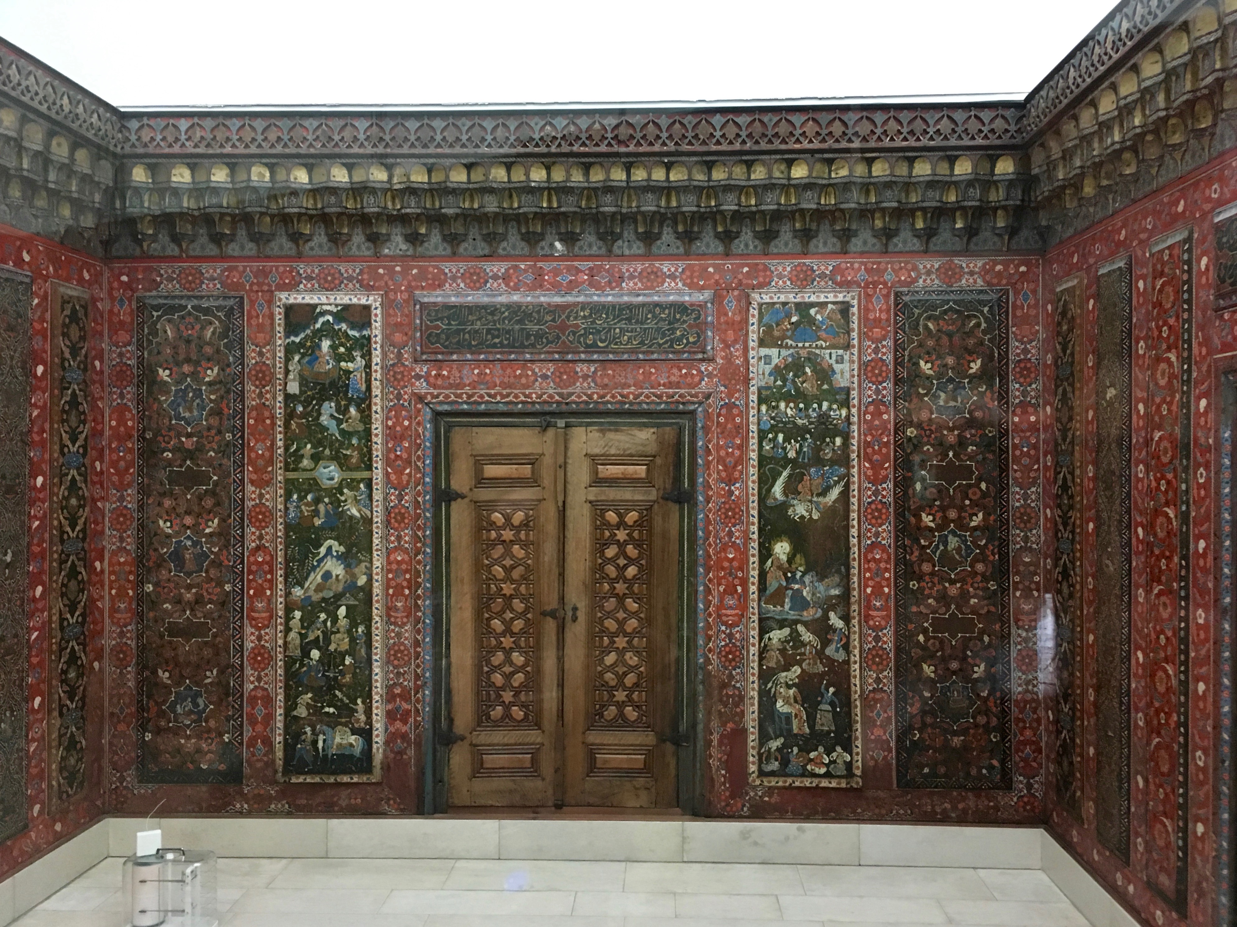 Moving just slightly north, the Pergamon Museum is also a favorite of mine. I’ll probably do a whole blog on items from these museums, but this is just a teaser. Located in the Pergamon are entire facades of gates reconstructed from mounds of blocks found in the Middle East. When I first saw these artifacts several years ago, I was incensed that colonial powers had stolen and imprisoned these cultural treasures so far from home. Now that ISIS on one hand and the war in Syria on the other are doing their own fine job of destroying what historical remnants remained in the country itself, I have a slightly more charitable view of the colonial borrowing. In honor of the destruction that has occurred in Syria, and most recently in Aleppo, I post this picture of a reconstruction of a banquet hall (dining room) located in an early 17th century home from the Christian section of the city: