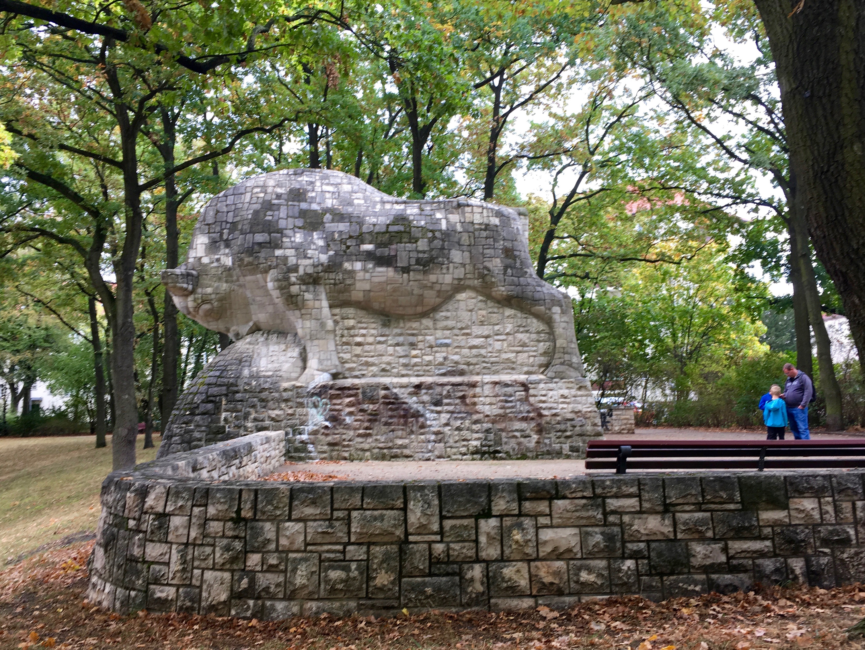 …representing, according to one blog, the “black bulls Hel used to send from the lake up to the surface. The bulls helped the pagan priest who tended her altar – to toil the land and feed himself.” Naturally, none of this was taken kindly by Charlemagne and his minions who converted most of Germany (the Franks at that time) by the sword in the early ninth century. Hel and her lot were consigned to the dustbin of history *except that she regained her glory under the Nazi regime and was used as some form of inspiration to them.* Perhaps that explains the lack of signage – Berlin wants to keep the park free of politics — and the neo-Nazi demonstrations in Dresden. But it is a fascinating site nonetheless.