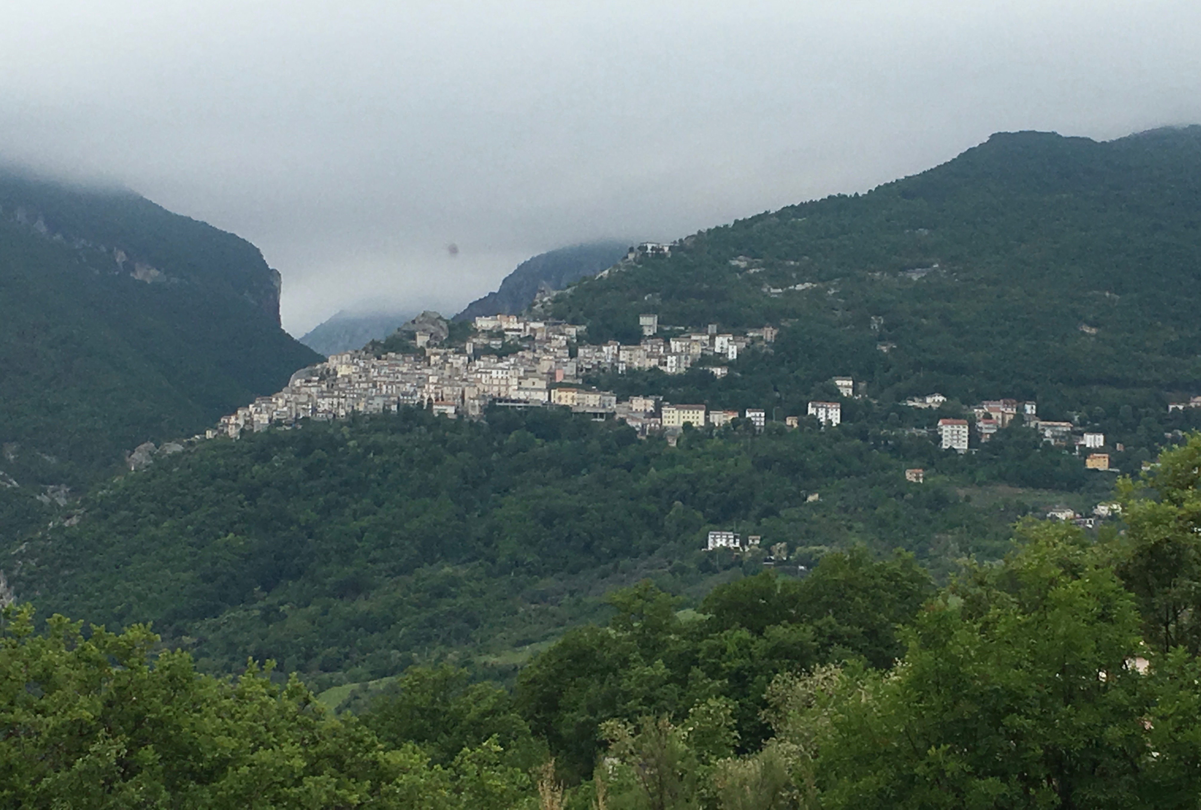 Shortly after our marriage, T called his locale commune (his township or local municipality) to inform them of a change in dependent status and ask for the next steps. In typical charming Italian fashion, he was offered the warmest wishes of congratulations and told it was merely a simple matter of going to the questura (police station) in a nearby town and applying for my permesso di soggiorno, a permission to reside in Italy for a period greater than three months, the renewable document required of all non-EU citizens who wish to live in Italy. I had a hunch that it would be slightly more complicated than that, and indeed it is proving to be so, even though we have not yet gotten any hint that we won’t ultimately be successful, and that marriage is probably the fastest route in any case to obtain this document. But as inspiration for you to read this post and for me to not lose heart, here’s a shot of one of the villages not far from T’s home: