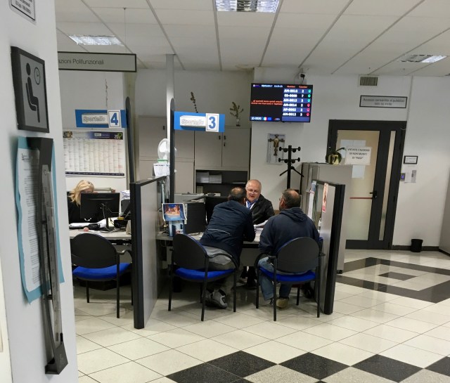 • Next, off to a different building in the same town for my codice fiscale, my Italian tax ID. At this moment, I’m certainly happy to pay tax to just about any government except my own, so this is fine by me. Here, at least, the 21st century seems to be in evidence: