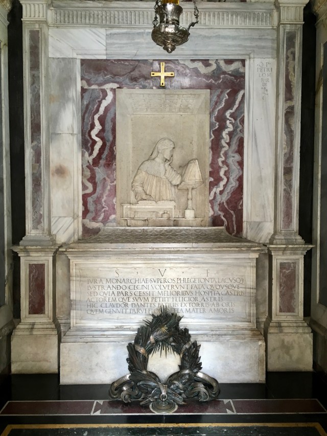A short walk from here (see above on short walks), one finds Dante’s Tomb. Yes, that Dante. In exile from his hometown of Florence, Dante died in Ravenna in 1321. After a couple hundred years when tempers had finally subsided, the pope ordered the bones back to Florence but the wily Ravennians *sent an empty coffin,* Dante’s bones secretly hidden in a monastery for safekeeping. His remains only found the light of day again in 1865 or so during some renovations and now they are peacefully reposing on a quiet back street: