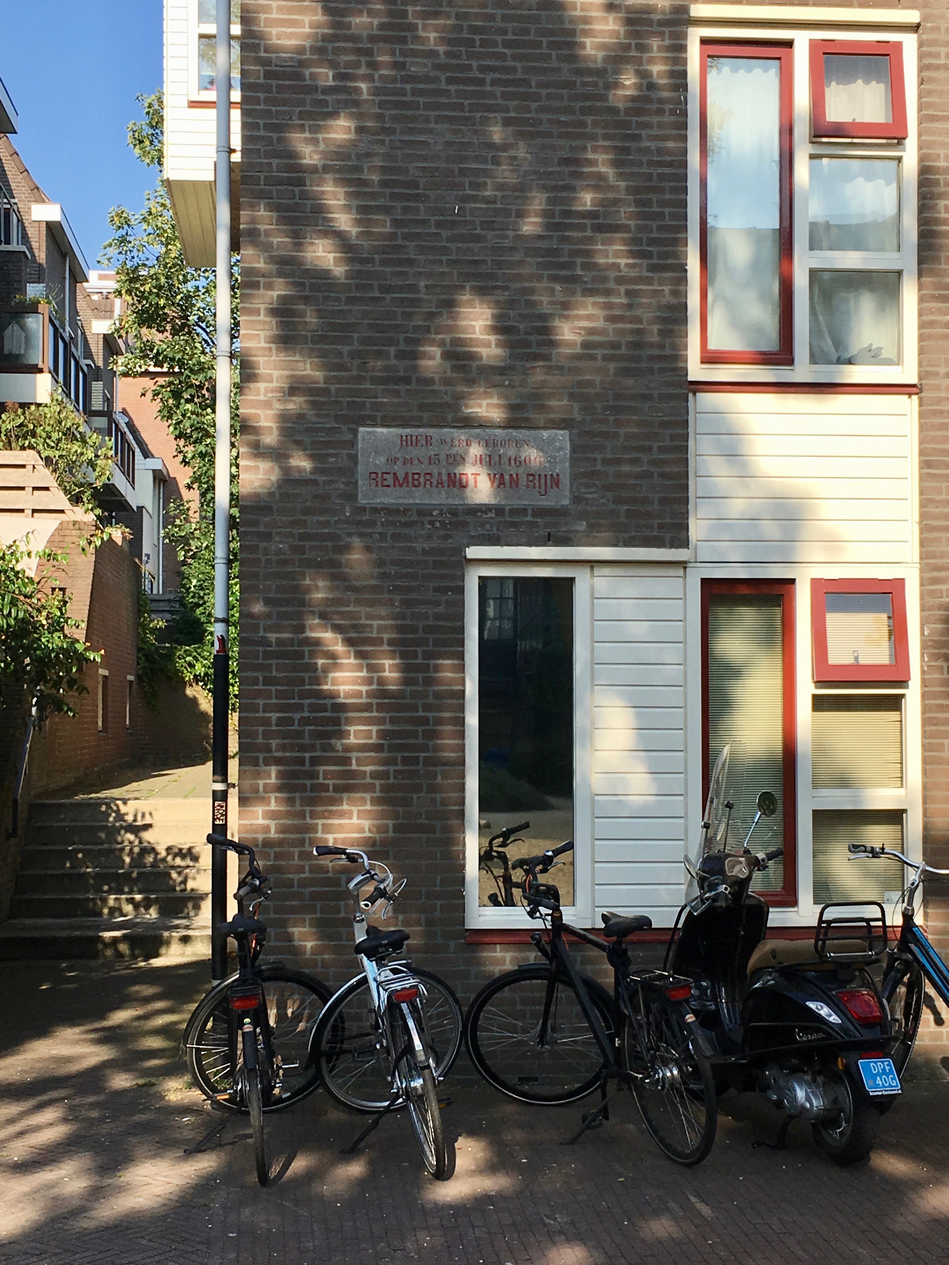 For starters, Rembrandt Harmenszoon van Rijn was born in Leiden on July 15, 1606, the ninth child in his family (ultimate total unknown). His birth home has fallen to the wrecking balls of history, but several plaques and a lovely garden commemorate the spot in the alley directly to the left of this building where he drew his first breath: