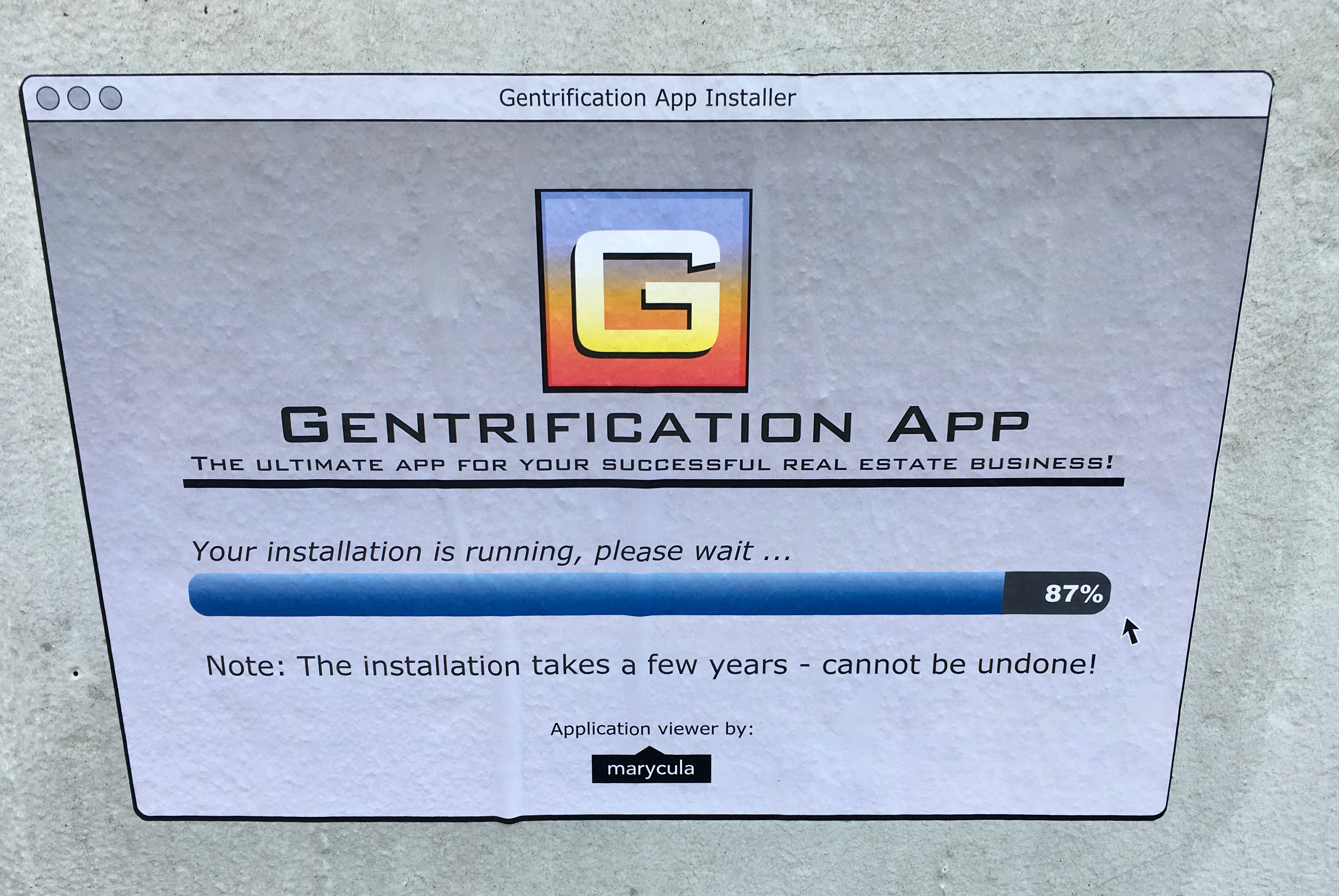 As noted before, T and I have thankfully landed a flat in Berlin, which in the current real estate climate is somewhat of a miracle and for which we are very very grateful. (This of course means that we are contributing to the increasing prices and decreasing affordable housing for the rest of the population, but there you go.) One cynical graffiti artist put it this way: