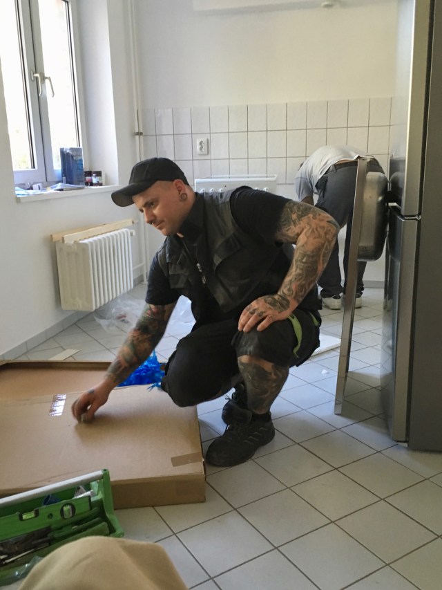 So, so far so good. We took possession of the flat in August and had the walk-through with the management company (the all-important “Hausverwaltung”), which is when I learned that German flats come with…..practically absolutely nothing. Four walls in every room, full stop. Now, we were lucky that our flat had functioning bathrooms, but that was it. No….kitchen, closets, toilet paper holders, cupboards, shelves, washing machine, curtains, you name it. Nada. All to be left to the discretion, imagination, creation, and wallet of the new tenants. There’s a brisk market on eBay in…used kitchens. How weird is that?