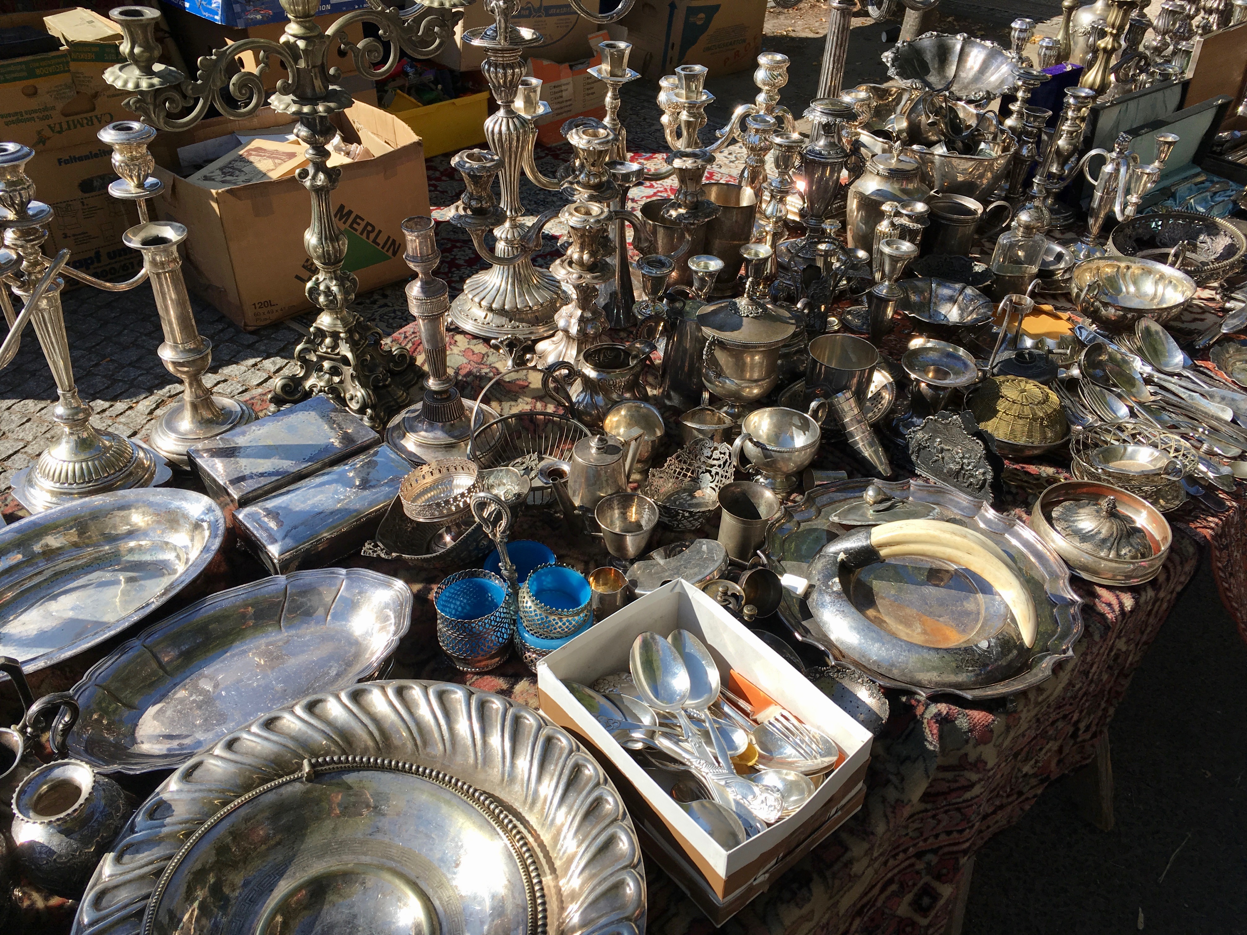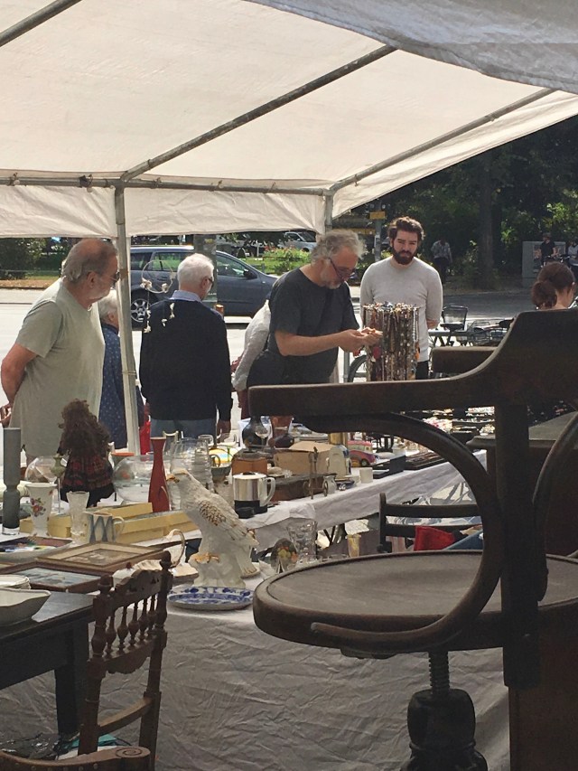 Part of the fun of assembling a flat here, of course, is that you can take advantage of all the amazing flea markets and antique stores in the greater Berlin environs, places T and I go regularly in our search for pens and such. Here’s a shot of T fully engaged in his hunting-gathering element: