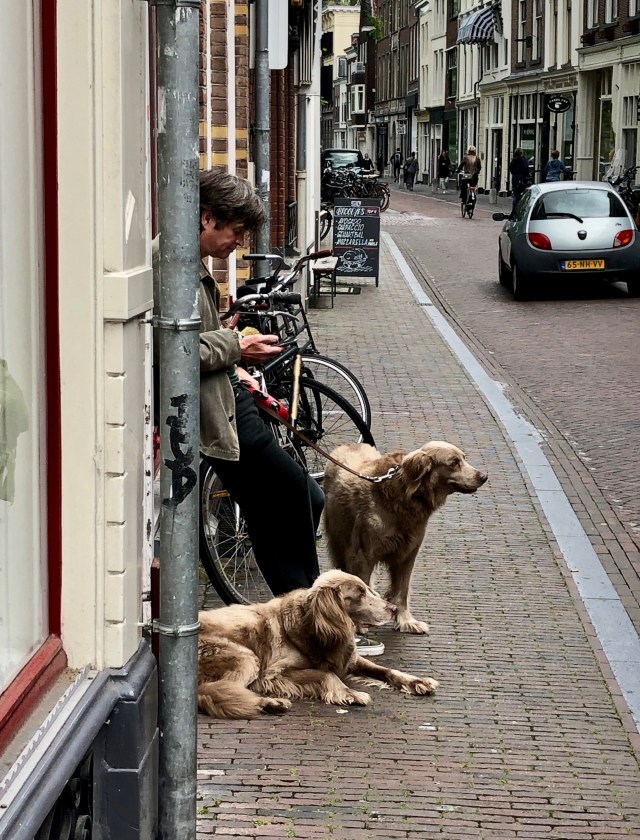Oh, these little Dutch cities are just heaven. I fell in love with Leiden last June, and now I can see this will be a life-long addiction. One just strolls slowly down the medieval byways that meander along and away from the canals and enjoys the bits of life that present themselves one after another…here’s a coffee shop window that got my full and complete attention for a moment or two: