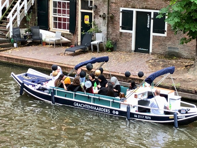 The canals themselves are charming and form an integral part of the urban landscape…and along this one in particular I spotted what I believe to have been a…Hijab Hen Fest, a group of Muslim women celebrating the engagement or wedding of one of their party, with significant help from their mobile devices, of course: