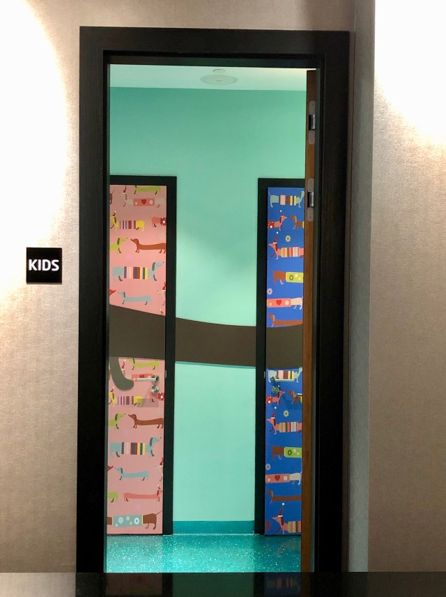 Speaking of kids, I was charmed and enchanted that our hotel had separate bathrooms….just for them. I tried to put my child molestation fears to rest for just a brief moment and to enjoy the sheer whimsy and thoughtfulness of the idea. The doors are to scale, but I can’t figure out a way to show that, so you’ll just have to take my word for it: