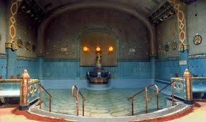 So it might come as some small surprise to you, gentle reader, that in these later decades I have been indulging in one of the most un-American of physical pastimes, that of bathing naked with strangers. My first foray into this Brave New World was when I visited Budapest for the first time in 1992, barely three years into the non-Communist regime. At that point, I with several other women from my Untours group visited the Gellert Baths, an astonishing Art Noveau complex of pools and thermal waters that adjoins the Hotel Gellert on the Buda side of the Danube:
