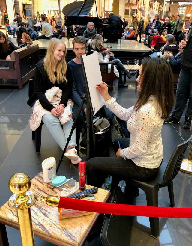 a caricaturist, carefully reflecting young love….and perhaps more curiously…