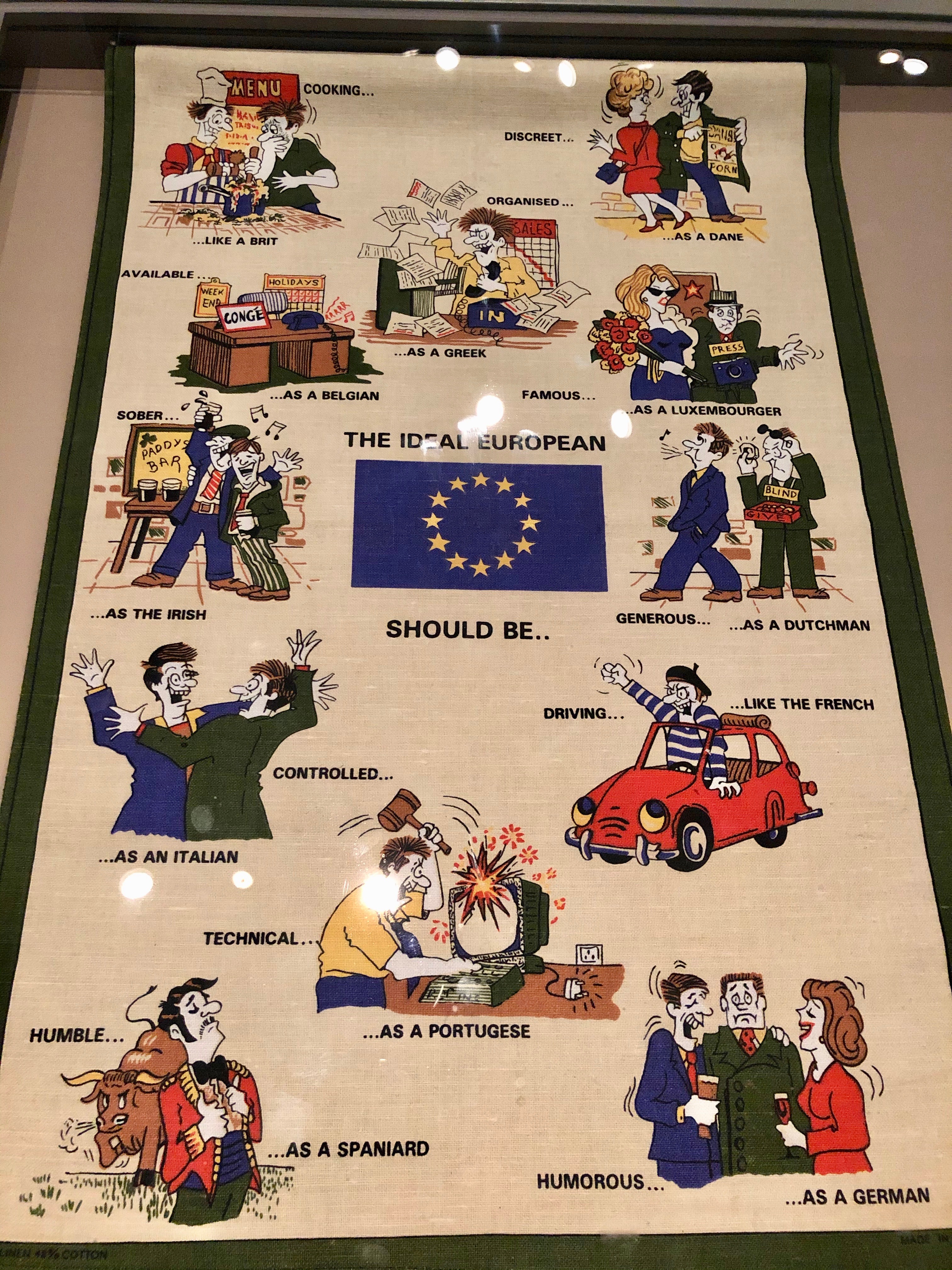But in typical German style, I am learning, no moment stays too sober for too long. Nearby these thoughtful ideas hung a poster to “the Ideal European,” i.e.: