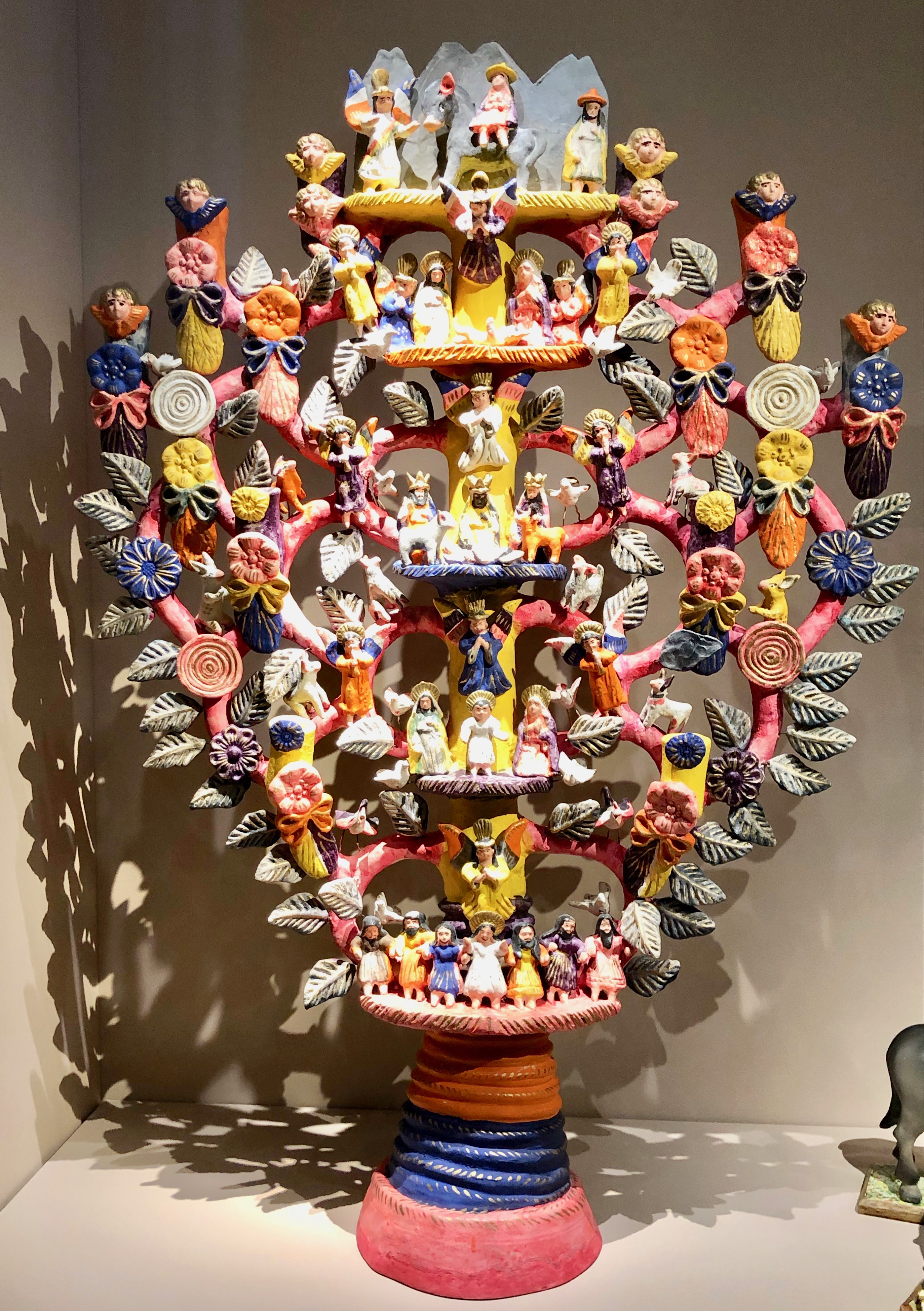 The third scene is from Mexico, a piece of ceramic based on the theme of the tree of life. This lovely artifact was produced by the potters of Metepec, a Mexican city. It’s nearly a meter (yard) in height:
