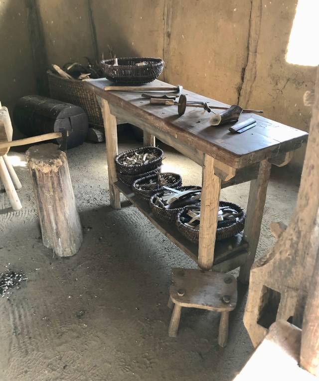 Foul singing aside, the houses themselves were as basic and utilitarian you might imagine, and my photos of them are a bit dull, hence the omission. Basically they are long houses with cooking and heating elements at each end and a large room in the middle with raised beds covered in fur. But here’s a shot of a contemporary tool workshop, and as always it gives one pause to realize and remember that real people just like you and me lived their whole lives for hundreds of year on this material level.