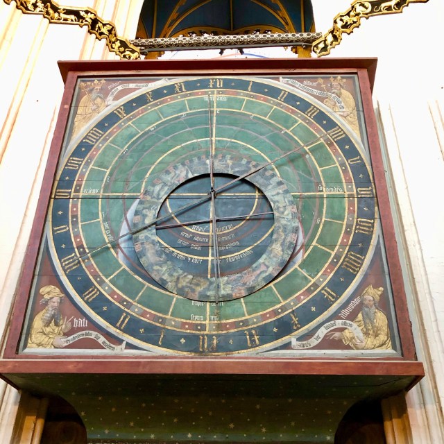 Wiki tells us “behind the high altar is (a model of ) the astronomical clock, which was built in 1394 by Nikolaus Lilienfeld. The clock is part of a whole series of monumental clocks, which were installed since the 14th century in churches in different cities of the Hanseatic League It has a wheel train with a mechanical escapement. In addition to day and night times, the positions of the sun, moon, and fixed stars can also be read off the clock. It is the oldest almost completely preserved astronomical clock in the Baltic region and also the oldest mechanical clock in the world that still contains its original wheels.” Don’t give up on weather.com, but I still think this is pretty damn cool, particularly the 1394 part.