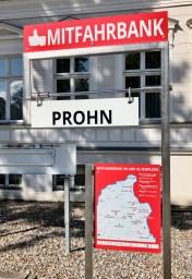 Not far away, another thoughtful concept. The picture below is of an institutionalized ride-sharing site “Mitfahrbank”, where people select and advertise the name of the village to which they want to travel – Prohn is the current objective, but you can see a map below the sign with other alternatives in the area – and then sit on the nearby benches to wait until someone stops by and gives them a lift. I’ve never seen anything quite so organized, and I love the idea: