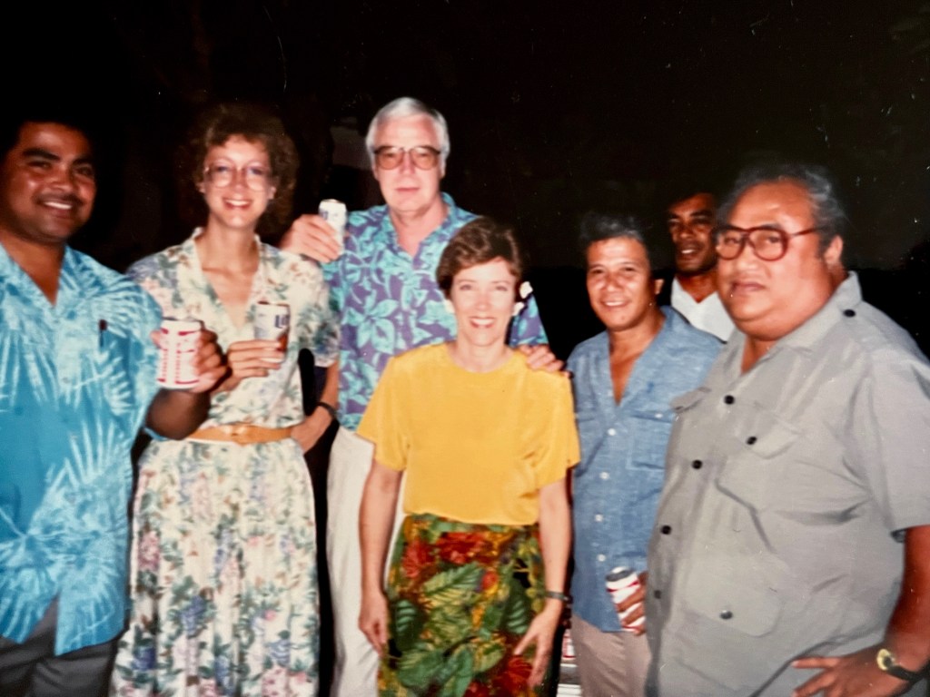 Because of Jim, I visited Palau, the Federated States of Micronesia, the Republic of the Marshall Islands, Guam, and Fiji, some of these places multiple times. Here we are with another training colleague Nancy in one of those far-flung island outposts – but to be perfectly honest I don’t remember which one: