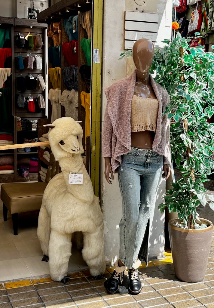 Since I didn’t want to be immediately judgmental, I tried, I really tried, to give the place/s a chance. However, it felt a good bit like the Great Bazaar in Istanbul, if you have been there. Everyone is WAY too friendly, everyone trying to lure you into their teeny tiny stalls chock-a-block full of alpaca hats and sweaters, llamas in wool or wood or felt or silver or whatever, lots of woven bracelets, you get the idea. I did want to take this fellow home: