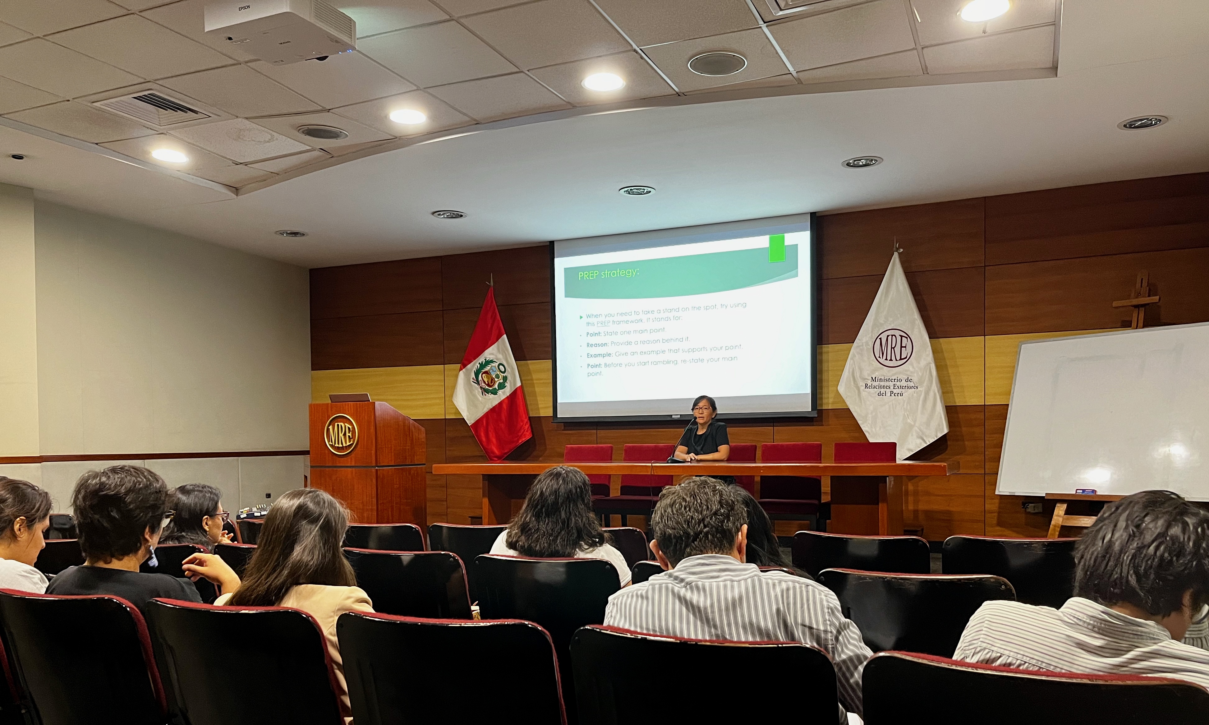 With the bulk of my first teaching week behind me (still another class tomorrow), this morning I decided I had to stretch the old legs and head out on a ramble. Before we hit the streets, though, here’s proof that I actually did work the last four days. Brave Wendy here is pretending to be the President of Peru (who everyone vehemently hates, apparently) during our “Answering Difficult Questions” exercise: