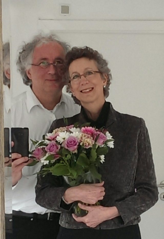 I had been searching in the Holländisches Viertel for a place that served amazing hot chocolate, recommended to me by local friends. Alas, several turns up and down the picturesque streets failed to find it (or if I found it, I didn’t recognize it), but instead I was cheered by this bit of Easter swag, a nearly meter high (one yard) purple bunny that helped get me in the mood for the chickies and duckies arriving this Sunday: